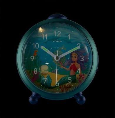 Mit einem farbenfrohen Meerjungfrauenmotiv begeistert dieser Kinder Wecker der Marke ATRIUM. Die Lichtfunktion ermöglicht das Ablesen der Uhrzeit auch im dunklen Kinderzimmer. Die Bedienung erfolgt ganz leicht mit nur einem Knopf.