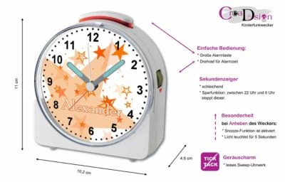 Kinder Funkwecker Motiv Sterne Orange – ein absolutes Unikat