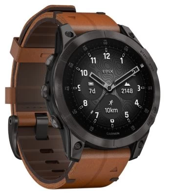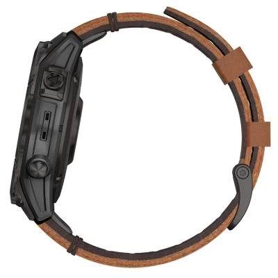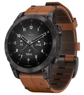 GPS Premium-Smartwatch, 60 Sport-Apps, Elevate-Technologie, Pulse Ox, Health Snapshot™, Body Battery™,Trainingsanalyse, animierte Workouts, PacePro™, ClimbPro-Funktion, Distanz und Höhenmeter, Expeditionsmodus, ToPoActive Europa-Karte, Turn-by-Turn Navigation, Notfallhilfe und Unfallbenachrichtigung, Garmin Music, Garmin Pay™, Gruppentracking, EXO™, erweiterte ABC-Sensoren, Barometer und Kompass, Bluetooth Smart und ANT+, WLAN, Garmin Connect, Displaygröße 33 mm, 454 x 454 Pixeln Auflösung, Smart Notifications, Uhrzeit im 12- oder 24-Stunden-Format, Kalender, Weckfunktion, Gehäuse aus faserverstärktem Polymer, Titan-Lünette und Titan-Gehäuseboden, Saphir Glass™, wasserdicht bis 10 bar, Größe 47 x 47 x 14,5 mm, QuickFit™ Armband aus braunem Leder, Lade-/Datenkabel