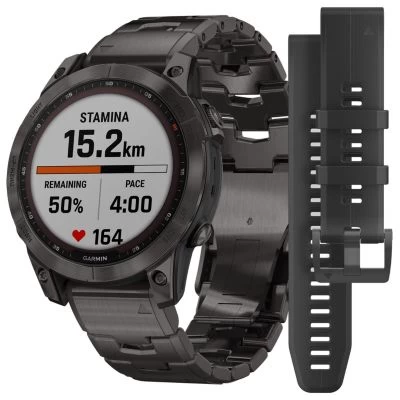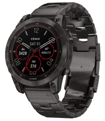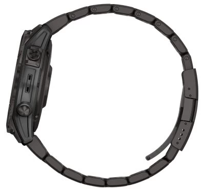 GPS Premium-Smartwatch mit Multisport-Funktionen und modernster Solartechnologie, Elevate-Technologie, Fitnesstracker, Health Snapshot™, Body Battery™, PacePro™, ToPoActive Europa-Karte, Notfallhilfe und automatische Unfallbenachrichtigung, Garmin Music, Garmin Pay™, Gruppentracking, EXO™ Edelstahlantenne mit GPS/GLONASS/GALILEO, Barometer und Kompass, Bluetooth, WLAN, Farbdisplay, Displaygröße 33 mm, mit 260 x 260 Pixeln Auflösung, Smart Notifications, Uhrzeit im 12- oder 24-Stunden-Format, Kalender, robustes Gehäuse aus faserverstärktem Polymer, Titan-Lünette und Titan-Gehäuseboden, Saphir Glass™, wasserdicht bis 10 bar, Größe 47 x 47 x 14,5 mm, QuickFit™ Armband aus DLC-beschichtetem Titan mit Faltschließe, Lade-/Datenkabel