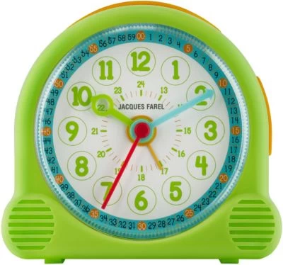 Ein echter Hingucker- der JACQUES FAREL Kinder Wecker in kräftigem Farbton! Damit Kindern das Erlernen der Uhrzeit erleichtert wird, sind Ziffernblatt und Zeiger unterschiedlich gefärbt.