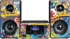 Das Lenco MC-020 Tags ist ein FM-Stereoset mit Bluetooth, USB und AUX-Eingang und besticht durch sein cooles Grafitti Design. Erlebe gemeinsam mit deinen Freunden die Leistungsfähigkeit der Lautsprecher oder verbinde deinen Kopfhörer mit dem Kopfhörer-Eingang, sodass du deinen Lieblingssong ungestört im Repeat-Modus hören kannst. Mit dem Lenco MC-020 kannst du den ganzen Tag Musik spielen, wie du es willst.