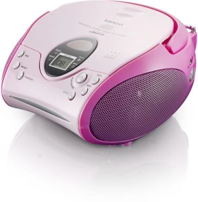 Lenco SCD-24 UKW-Radio mit CD-Player und Teleskopantenne. Das Lenco SCD-24 ist ein praktisches tragbares FM-Radio inklusive CD-Spieler. Es ist ideal für Jung und Alt geeignet, da es sehr robust ist, ein ansprechendes Design hat und über einfach zu bedienende Tasten verfügt. Es ist mit einer 3,5mm Kopfhörerbuchse ausgestattet. Sind Sie oft unterwegs? Das tragbare FM-Radio inklusive CD-Spieler ist der perfekte Reisebegleiter. Mit dem Lenco SCD-24 haben Sie Ihre Lieblingsmusik immer und überall dabei. Das Tonsignal können Sie durch die zwei eingebauten Lautsprecher genießen oder Sie stecken, für eine private Musiksession, einfach ein paar Kopfhörer ein. Sie können das FM-Radio inklusive CD-Spieler ganz einfach an den Strom anschließen oder per Batterie betreiben. Der Lenco SCD-24 ist in pink, rot/schwarz, blau/schwarz, weiß, violett und grün/schwarz erhältlich.