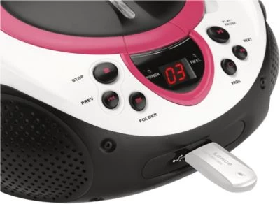 Das Lenco SCD-38 ist ein tragbares FM-Radio mit CD/MP3-Player. Es ist sehr robust, hat ein ansprechendes Design und verfügt über einfach zu bedienende Tasten. Es ist mit einem USB-und AUX-Eingang ausgestattet. Sie brauchen das Gerät nur an das Stromnetz anzuschließen, können es aber auch mit Batterien betreiben. Mit nur einem Knopfdruck können Sie sofort Ihre Lieblings-CDs oder Radiosender genießen. Speichern Sie Musik auf Ihrem USB-Stick und spielen Sie Ihre MP3-Musiktitel auf dem SCD-38 ab. Der Lenco SCD-38 ist in blau, rosa und grün erhältlich.