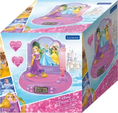 Rapunzel Wecker mit Radiofunktion und Projektor, der auf Knopfdruck die Zeit an die Decke projeziert! Per Druck auf den Wecker kann ein Nachtlicht für 15 Minuten aktiviert werden. Per Knopfdruck ertönen auch 4 Geräuscheffekte passend zum Thema „Rapunzel“.