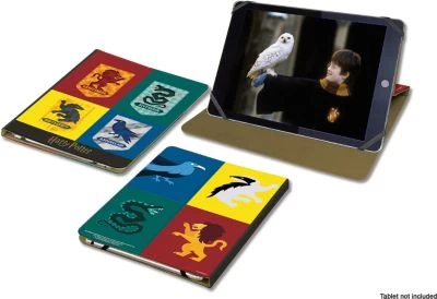 Diese Tablettasche begeistert Fans in ihrem einzigartigen „Harry Potter“-Design und schützt das Tablet vor Stößen oder Kratzern. Sie kann gefaltet werden, so dass sich das Tablett zum Lesen oder Anschauen eines Films aufstellen lässt.