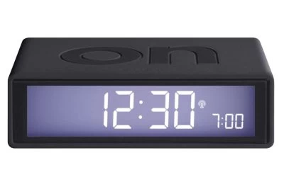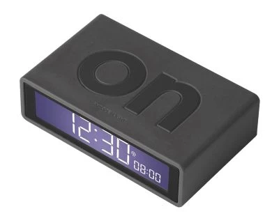 Wecker mit LCD-Display, auch als Reisewecker bestens geeignet, stellt sich durch die Funkuhrtechnologie automatisch auf die Ortszeit ein, digitale Anzeige von Uhrzeit und Weckzeit, 12- oder 24h-Format wählbar, die Weckfunktion ist aktiviert, wenn der Schriftzug ON oben liegt, Alarmsignal mit Piepton, der sich alle 10 Sekunden beschleunigt und nach 30 Sekunden kontinuierlich tönt, Alarm-Ausschaltung durch Drehung des Gehäuses auf die OFF-Seite, Schlummerfunktion mit Weckwiederholung nach 5 Minuten (Snooze), Touch Sensor Hintergrundbeleuchtung (4 Sekunden lang), Gehäuse aus ABS-Kunststoff und dunkelgrauem Kautschuk, Design: Adrian & Jeremy Wright, Größe 104 x 65,5 x 30 mm, 2 Batterien AAA werden mitgeliefert