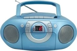 Das Gerät kann mit Batterien betrieben werden und ist somit auch der perfekte Begleiter für unterwegs. Neben dem integrierten, gut klingenden, Stereo-Lautsprechersystem ist in das geschwungen designte CD-Kassetten-Radio auch ein Kopfhöreranschluss vorhanden.