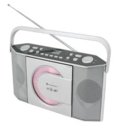 Ideal für schmalere Stellen wie z.B. in Küchen, Fensterbänke etc.Der CD Player ist in die Gehäusefront integriert und unterstützt mit CD, CD-R/CD-RW und dem datensparendes CD-MP3 alle wichtigen Formate. CD-Titelprogrammierung und CD-Wiederholfunktion runden das Ausstattungspaket ab.Das Radio unterstützt UKW PLL, mit dem Sie Programme in sehr guter Soundqualität empfangen. Dabei haben Sie 5 separate Stationstasten für Ihre im Festsenderspeicher abgespeicherten Lieblingssender, die so einen schnellen und bequemen Senderwechsel ermöglichen.Das Kofferradio mit seinem praktischen Tragegriff unterstützt sowohl Netz- als auch Batteriebetrieb und überzeugt mit seiner Mobilität und dem kräftigen Stereo-Sound.