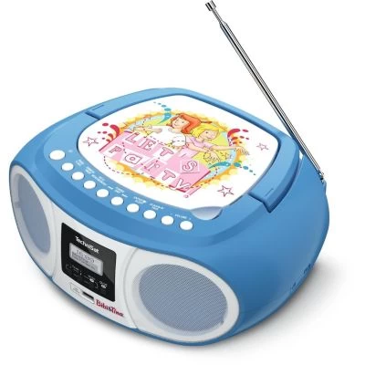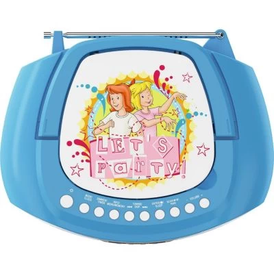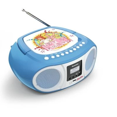 In der Bibi und Tina Edition bringt das DIGITRADIO 1990 kleinen Bibi und Tina-Fans noch mehr Freude beim Eintauchen in die Geschichten und Abenteuer. Denn die Oberseite, genauer das CD-Fach, begeistert mit einer großen Grafik, die Bibi und Tina in Partystimmung zeigt. So sind die Lieblingsfiguren immer Blick.