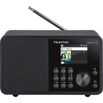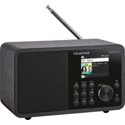 Im kompakten Gehäuse des TELESTAR DIRA M 1 findet sich topaktuelle Radiotechnik, die den Empfang von digitalen DAB+ und Internetradiosendern, sowie analogen UKW Radiosendern erlaubt. Das Hybridradio überzeugt durch soliden Klang, der per Equalizer an die eigenen Hörpräferenzen angepasst werden kann. Das 2.4‘‘ (6.1cm) TFT Farbdisplay gibt nützliche Hintergrundinfos gestochen scharf wieder. Dank UPnP, Line-In und USB Media-Playback können Musikdateien unterschiedlichster Formate und von diversen Quellen über das DIRA M 1 abgespielt werden. Nützliche Zusatzfunktionen wie Wecker, Sleeptimer oder die Darstellung aktueller Wetterinfos runden den Funktionsumfang des kompakten TELESTAR Multifunktionsradios ab und machen es zu einem absoluten Top-Produkt in seiner Preisklasse.