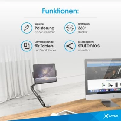 1x XLayer Teleskop-Halterung mit Schwenkarm für Tablets